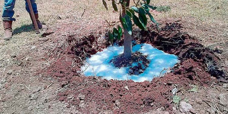 En detalle, el especialista comenta que el poliacrilato de potasio en polvo se entierra a la altura de la raíz de la planta y cuando llueve encapsula el agua volviéndola sólida. El agua se mantiene en este estado mientras la planta la va consumiendo según sus necesidades. Cuando la humedad en el polímero se acaba, este vuelve a su estado principal, esperando la lluvia para volver a encapsular el agua. El polvo es capaz de mantener este procedimiento por un periodo de 8 a 10 años.