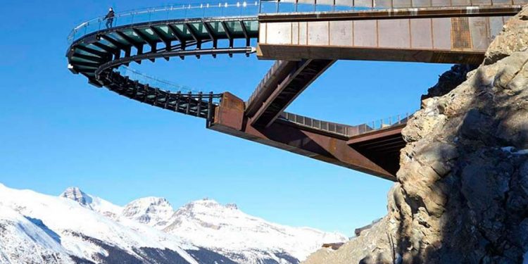 La firma canadiense Sturgess Architecture ha diseñado una plataforma de cristal para un voladizo sobre un valle glacial en los campos de hielo del Parque Nacional de Jasper en Alberta, Canadá.