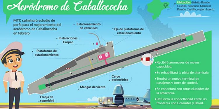 El aeródromo de Caballococha, ubicado en la región Loreto, podrá recibir muy pronto aeronaves de mayor capacidad, conectar con otras ciudades de la Amazonía y tener una rehabilitada pista de aterrizaje, una torre de control y un nuevo terminal de pasajeros con mayor capacidad informó el Ministerio de Transportes y Comunicaciones (MTC), que agregó que estas mejoras están contempladas en el estudio de preinversión a nivel de perfil del aeródromo de Caballococha, que lleva a cabo y que prevé concluir en febrero.