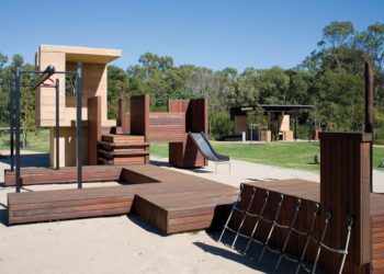 Una estructura de juegos y una serie de pequeños refugios conforman el Elysium Playground, un espacio instalado en la ciudad de Queensland, en Australia, en...