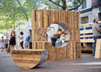 El centro de la ciudad de Seattle fue reconvertido temporalmente en un patio de recreo para niños y adultos con el mobiliario urbano de Pop-Up!,...